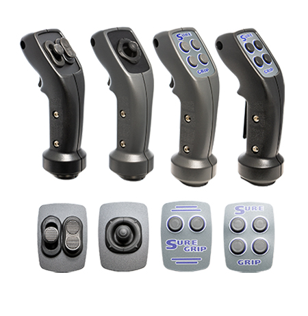 La empuñadura de la serie CU es de tamaño mediano. Está diseñada para ofrecer hasta 4 interruptores en la placa frontal, así como la opción de un interruptor de gatillo o una palanca de presencia del operador. Al igual que otras empuñaduras de Sure Grip, está moldeada en un plástico de alto impacto con forma ergonómica, ideal para trabajos pesados. Los interruptores están protegidos con la cubierta patentada que garantiza resistencia a la suciedad y humedad.